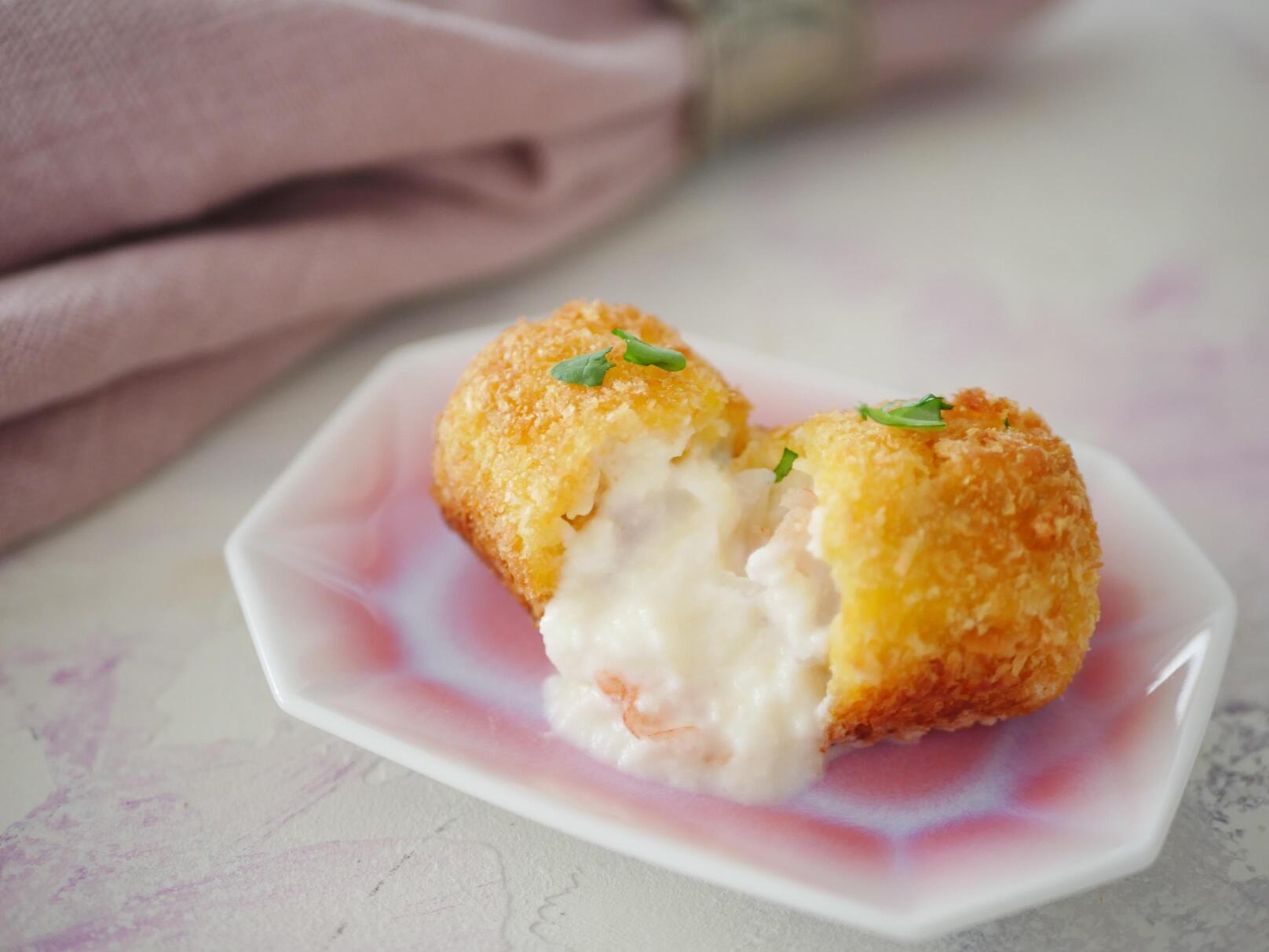 ④2個に分けて衣をつけ、160℃で3分~揚げる。