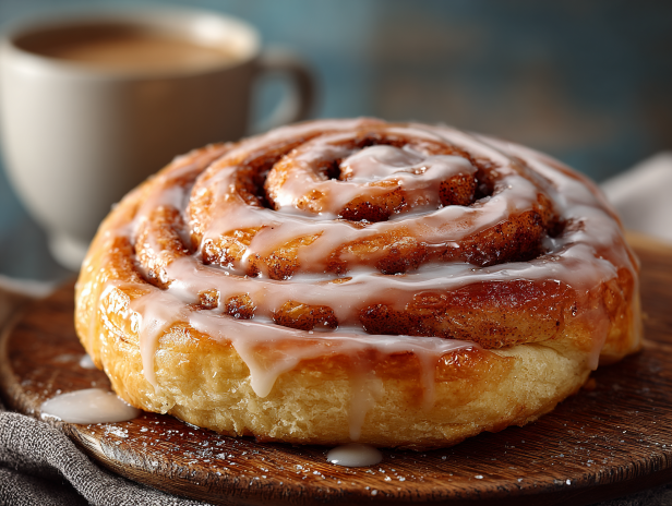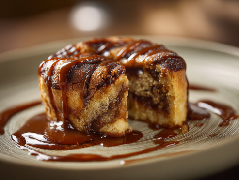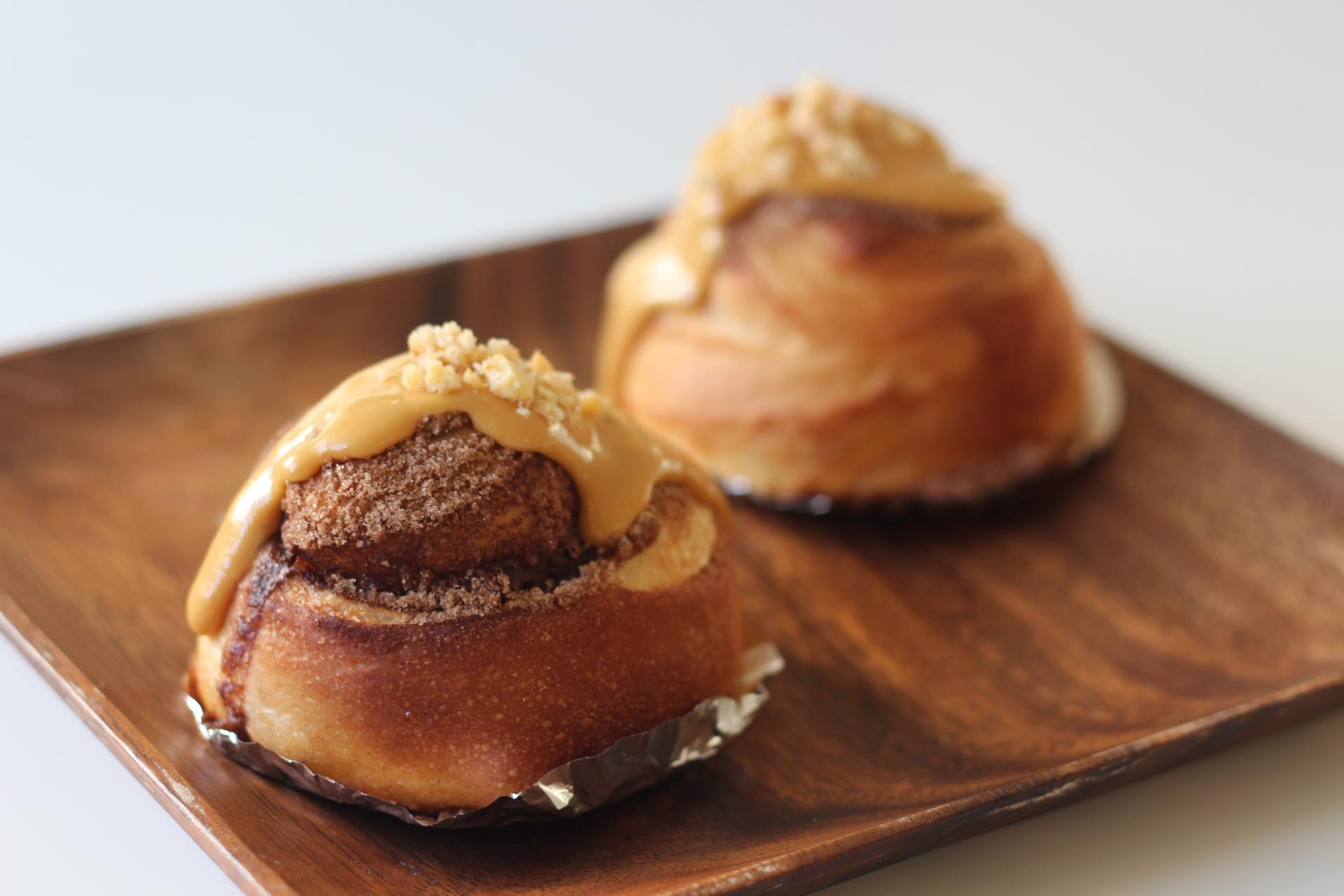 シナモンロールのキャラメルバージョン。粉砂糖とキャラメルソースを合わせて簡単アイシング。