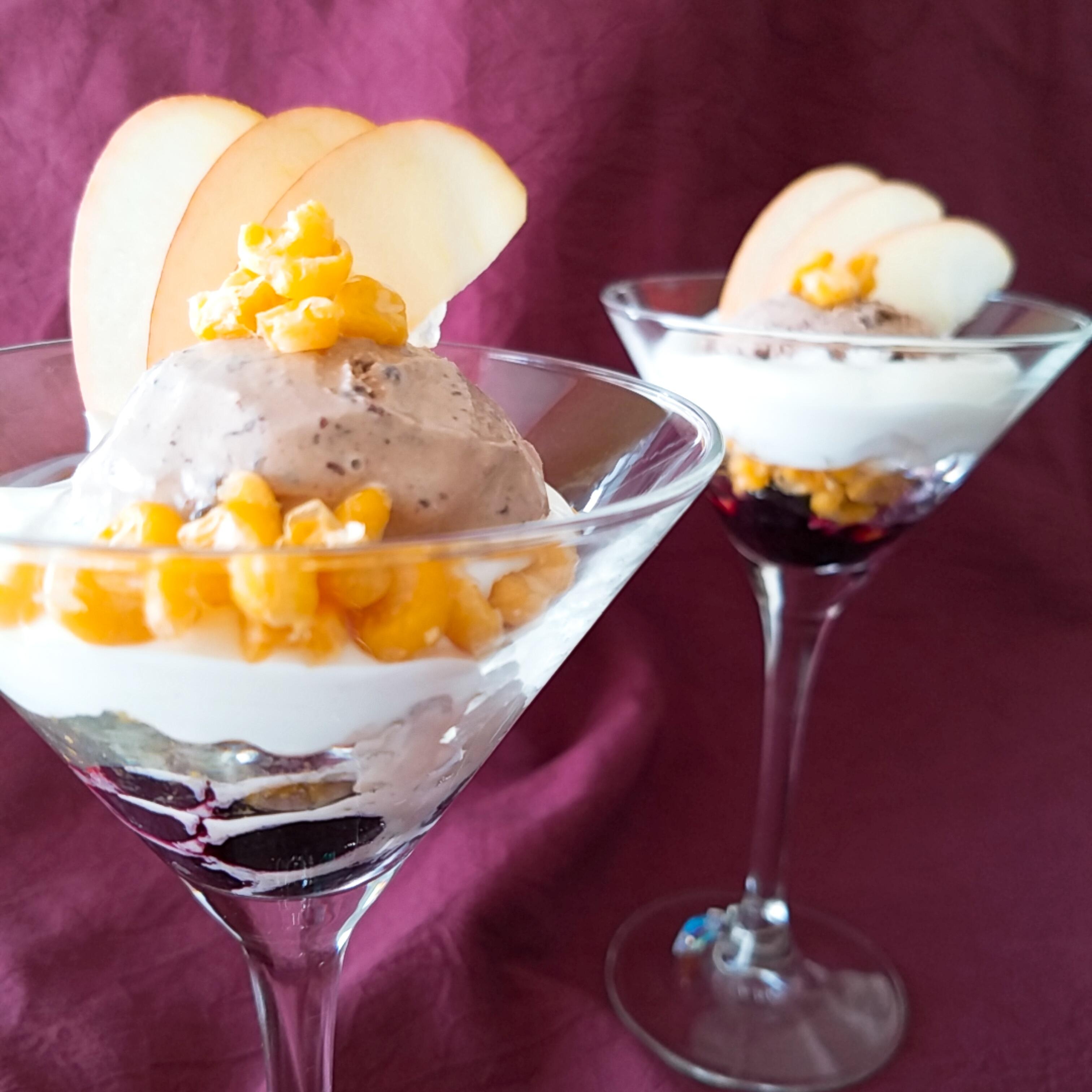 ④フライドコーンを盛り付け、チョコアイスを載せる。