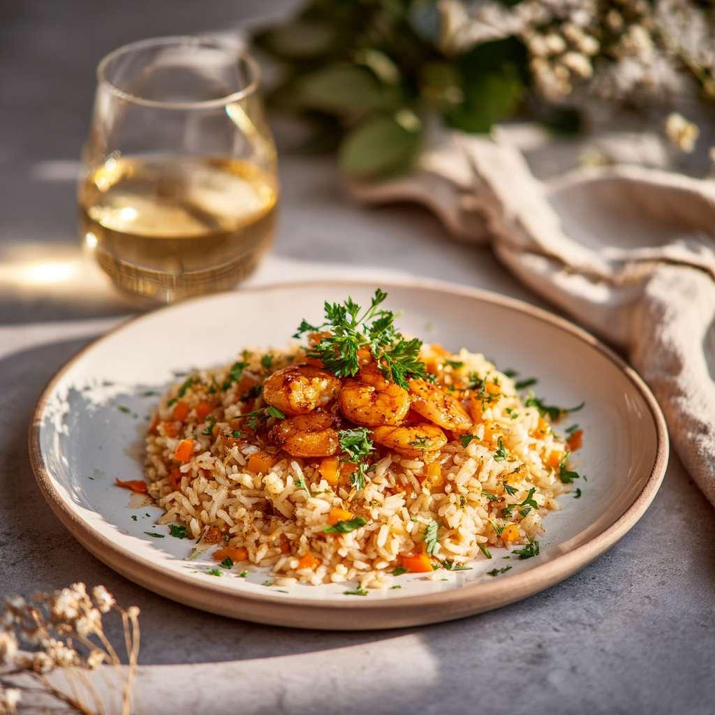 ⑤器に2のエビと4を注ぎ、お好みでハーブなどを散らす。